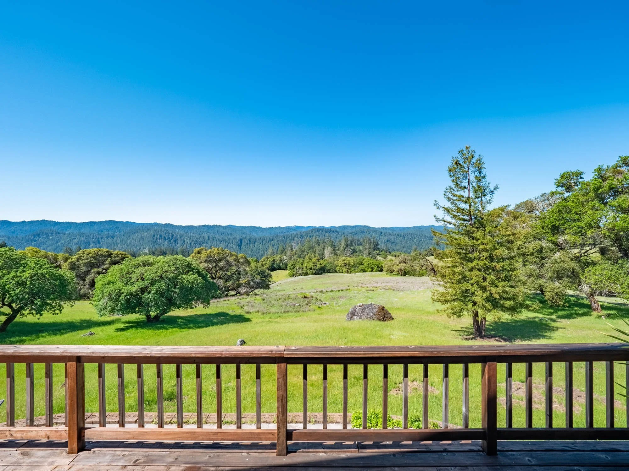 Rare deeded spring rights with an excellent spring and gravity-fed, 9,000-gallon tank system anchor this private Anderson Valley refuge—an increasingly valuable asset in California. Ideal for a retreat, regenerative homestead, or quiet creative life, this stunning 40-acre off-grid property offers million-dollar views in desirable Yorkville Ranch. It features a 1BD/1BA main home (928sqft) with a finished, 300sqft basement laundry room, and a detached 1BD/1BA guest house (435sqft), both with decks and sweeping valley and mountain views. Powered by solar and designed for self-sufficient living, the property offers comfort and sustainability. The land includes gentle meadows and scenic knolls, two seasonal creeks, and multiple potential building sites for a future larger residence. Approximately 15 acres are deer-fenced and include a large orchard with 130 Tuscan olive trees that produce excellent extra virgin olive oil, antique apple and pear trees, plus expansive garden space. Entertain outdoors on the patio with a Mugnaini Italian wood-fired pizza oven and outdoor kitchen. Peaceful and private, yet only about two miles from Hwy 128—less than a 10-minute drive.